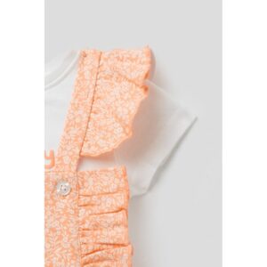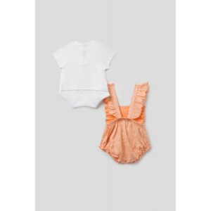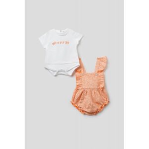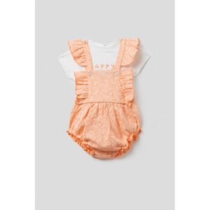- Conjunto de 2 piezas para bebé niña compuesto por body manga corta con mensaje, cuello redondo, cierre trasero botones presión y peto estampado corto floral Color: Naranja Costuras vistas a tono Envío 24v/48 horas