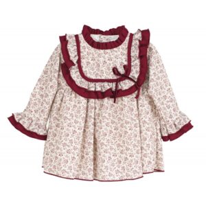 - Conjunto de 2 piezas para bebé niña compuesto por: Vestido de manga larga estampado tejido combinado y capota de punto Color: Granate Costuras vistas a tono Marca: Tony Bambino