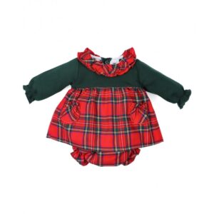 - Conjunto 2 piezas bebé niña compuesto por vestido manga larga cuello volante estampado tartan y cubrepañal Color: Verde oscuro Costuras vistas a tono Fabricado en España Moda infantil al mejor precio Marca: Popys vestido manga larga 2 piezas niña Popys Envío en 24/48 horas