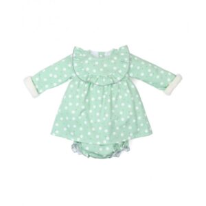 - Conjunto 2 piezas para bebé niña compuesto por vestido manga larga estampado detalle lazo cuello volante y cubrepañal Costuras vistas a tono Color:Verde/Crudo Fabricado en España Moda infantil al mejor precio Marca: Tony Bambino envio 24/48 horas