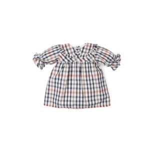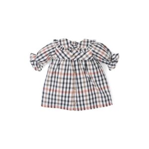 - Vestido de manga larga para bebé estampado cuadros con maxicuello y cierre posterior mediante botones Color: Arcilla Costuras vistas a tono Marca: Tony Bambino Fabricado en España