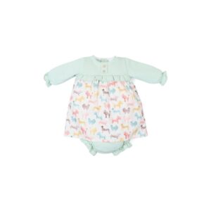 - Vestido de manga larga para bebé estampado perritos y cubrepañal liso Color: Verde Fabricado en España Costuras vistas a tono Marca: Tony Bambino Fabricado en España