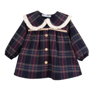- Vestido manga larga cuello volante detalle bolsillos y cubrepañal estampado cuadros Costuras vistas a tono Marca: Tony Bambino Fabricado en España Moda infantil al mejor precio Envío en 24/48 horas