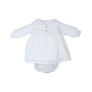 - Vestido manga larga cuello volante con cubrepañal estampado a conjunto Con forro interior Costuras vistas a tono Fabricado en España Moda infantil al mejor precio Marca: Tony Bambino Envío en 24/48 horas