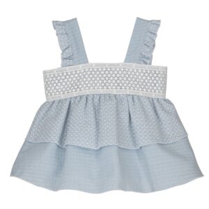 - Vestido topitos desmangado cuello volante y cubrepañal liso Fabricado en España Marca: Tony Bambino Envío en 24/48 horas