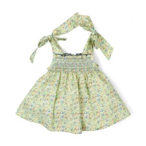 - Vestido tirantes bebé estampado floral con lazada en tirantes y nido de abeja en la parte del canesú Color:Verde Costuras vistas a tono Fabricado en España Marca: Popys