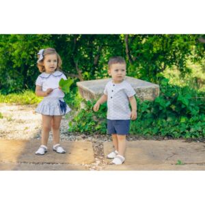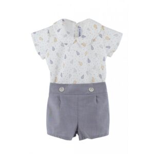 - Conjunto bebé niño excellentt Perissa compuesto por pantalón corto y camisa Color: Gris Costuras vistas a tono Fabricado en España Marca: Calamaro Baby Envío en 24/48 horas