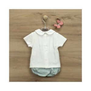 - Conjunto ranita corta y camisa manga larga bebé Color: Azul empolvado Costuras vistas a tono Fabricado en Portugal Marca: Minhon Envío en 24/48 horas