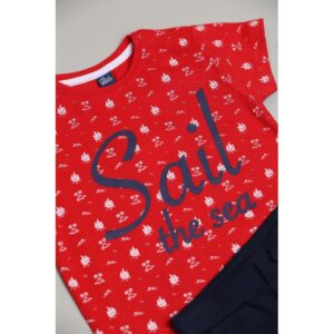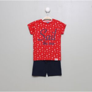- Conjunto corto bebe niño Compuesto por camiseta manga corta y pantalón corto Color: Rojo/Marino Costuras vistas a tono Modelo: ALL ABOARD Marca: Street Monkey