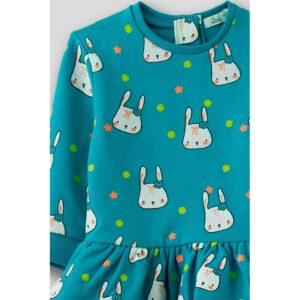 - Vestido de algodón manga larga para niña estampado con cuello redondo y bajo volante Conejitos Color: Cyan Costuras vistas a tono Composición: 95% Algodón 5% Elastano Marca: Street Monkey